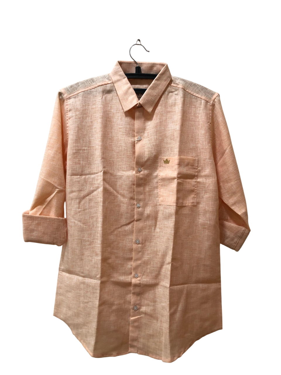 NX Light Peach Textured Cotton Shirt – Roll-Up Sleeve | Subtle Crown Embroidery